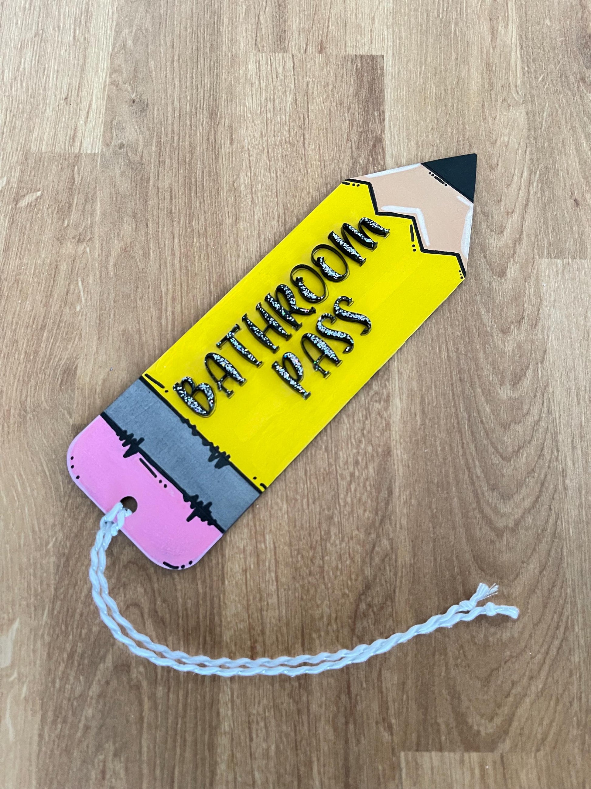 Personalized Teacher Pencil Sign – Hall Pass, Bathroom Pass, Classroom Decor –Hand Painted Birch Wood-Includes Twine